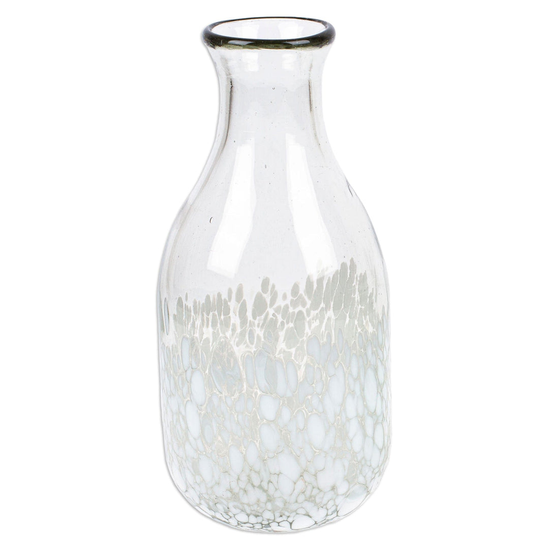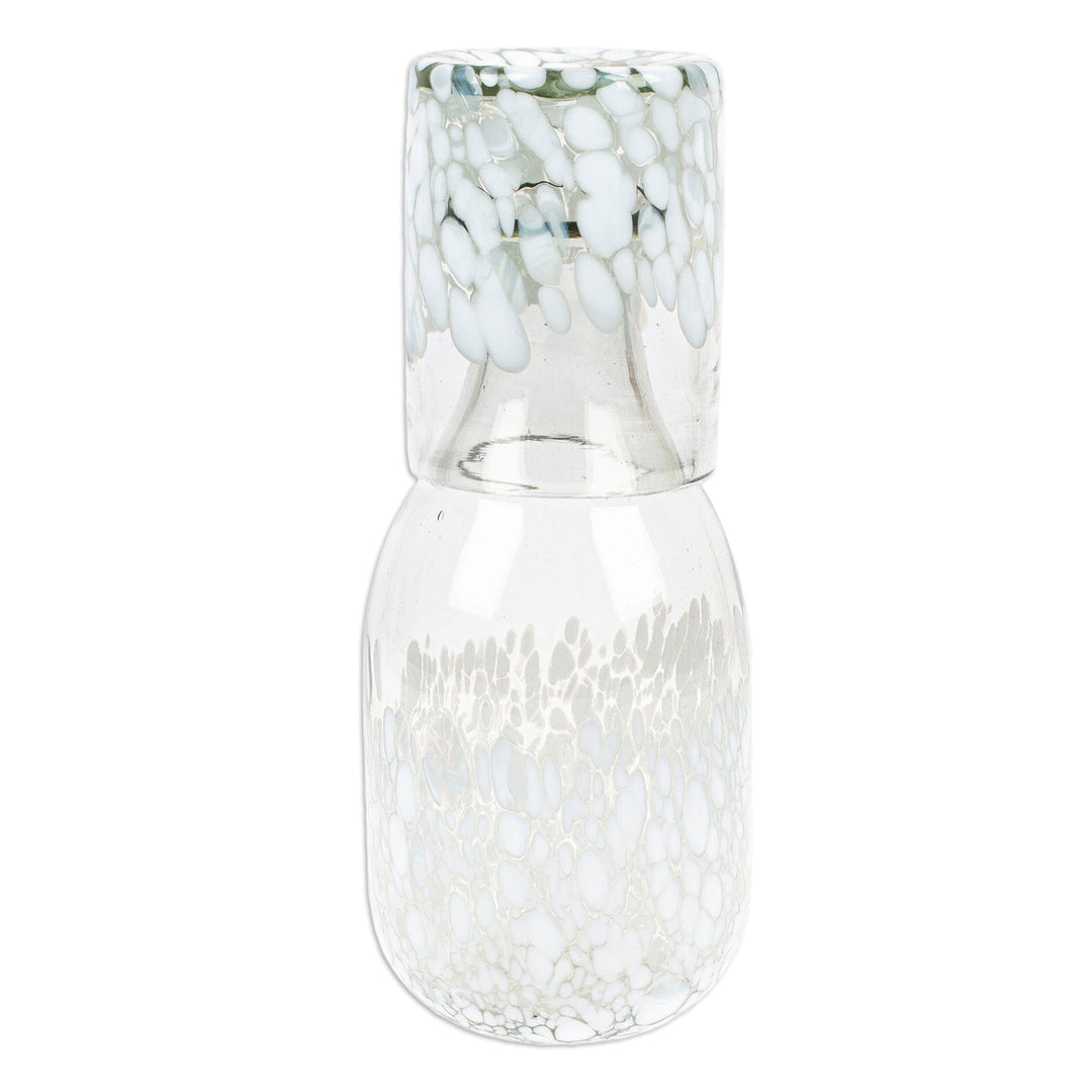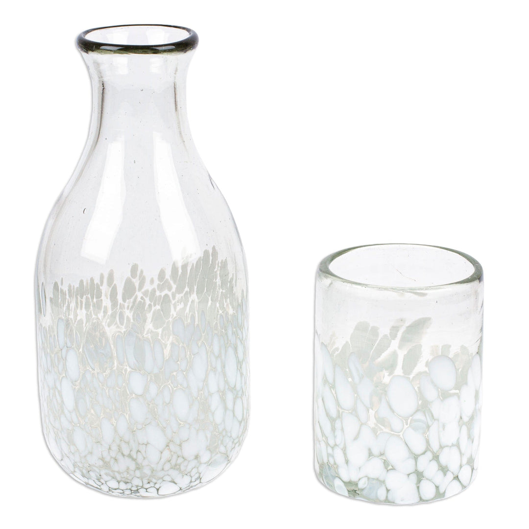Handblown Recycled Glass Carafe and Cup Set in White (Pair) - White Spots
