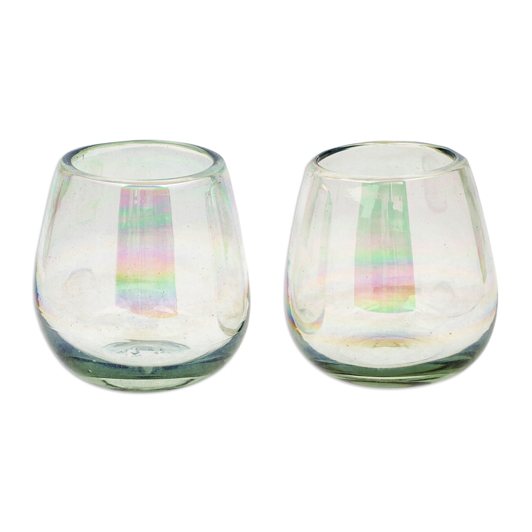 Pair of Eco-Friendly Clear Handblown Stemless Wine Glasses - Ethereal Joy
