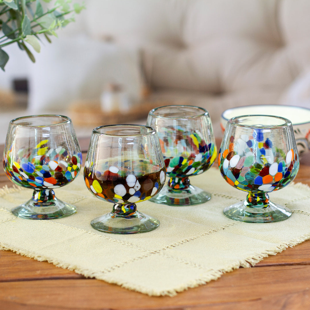 Set of 4 Colorful Handblown Glass Goblets from Mexico - Confetti Soirée