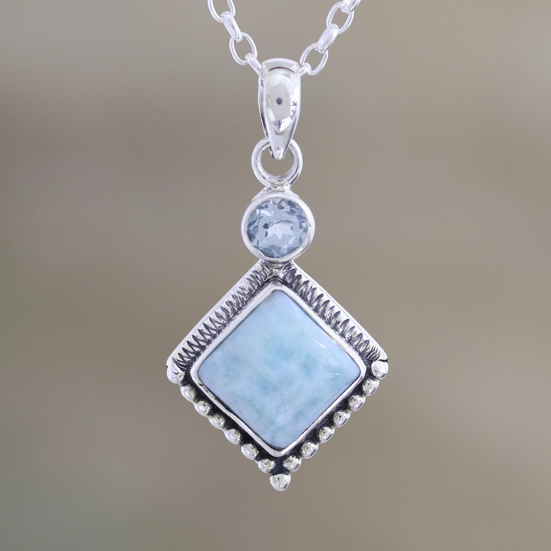 Hand Made Larimar and Blue Topaz Pendant Necklace - Frosty Fusion