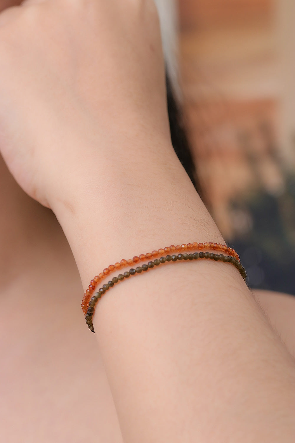 2 Thai-Made Moonstone Chalcedony Beaded Stretch Bracelets - Double Vibrancy