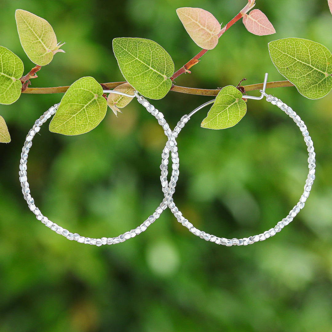 Avant-Garde Geometric Sterling Silver Beaded Hoop Earrings - New Nimbus
