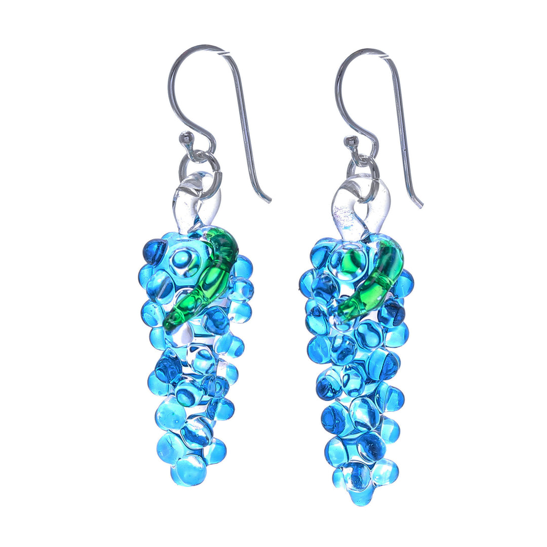 Blue & Green Grape-Inspired Handblown Glass Dangle Earrings - Azure Grapes