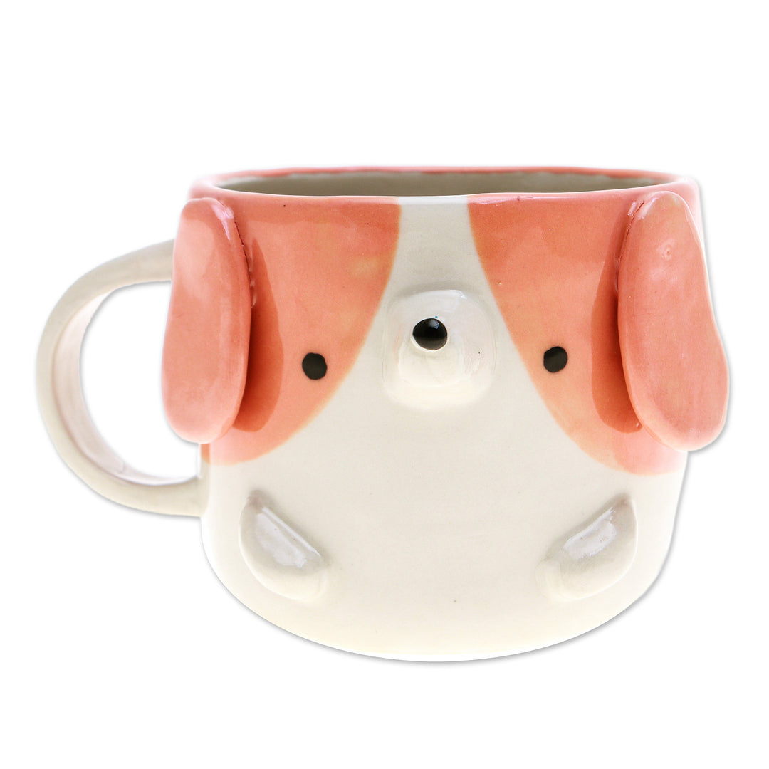 Say good morning with a delicious drink and the whimsical vibe of Paiboon's ceramic cup! This animal-themed mug—crafted from ceramic and Thai artisanal techniques—assumes the shape of an adorable beagle dog, painted by hand and accented with a glazed finish.