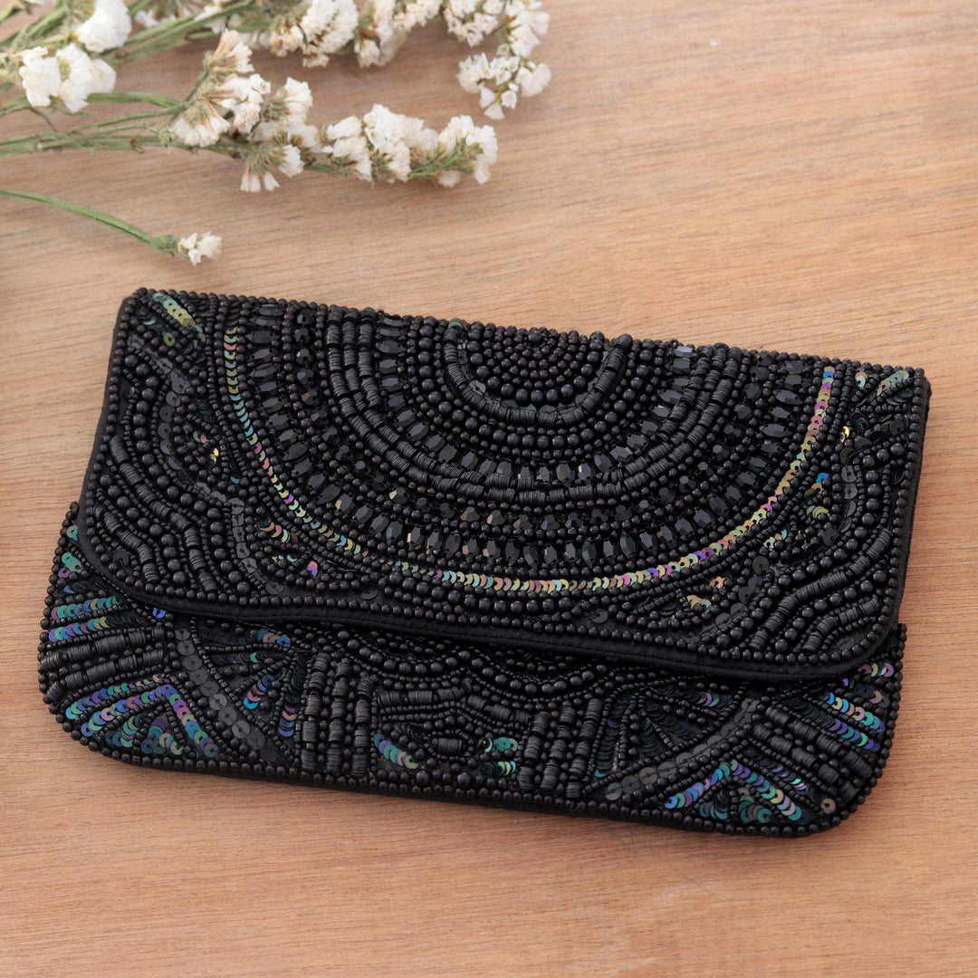 Artisan Crafted Beaded Silk Clutch from India - City Nights