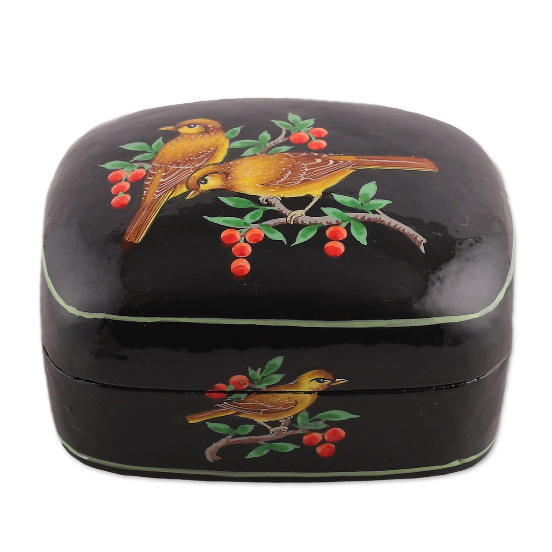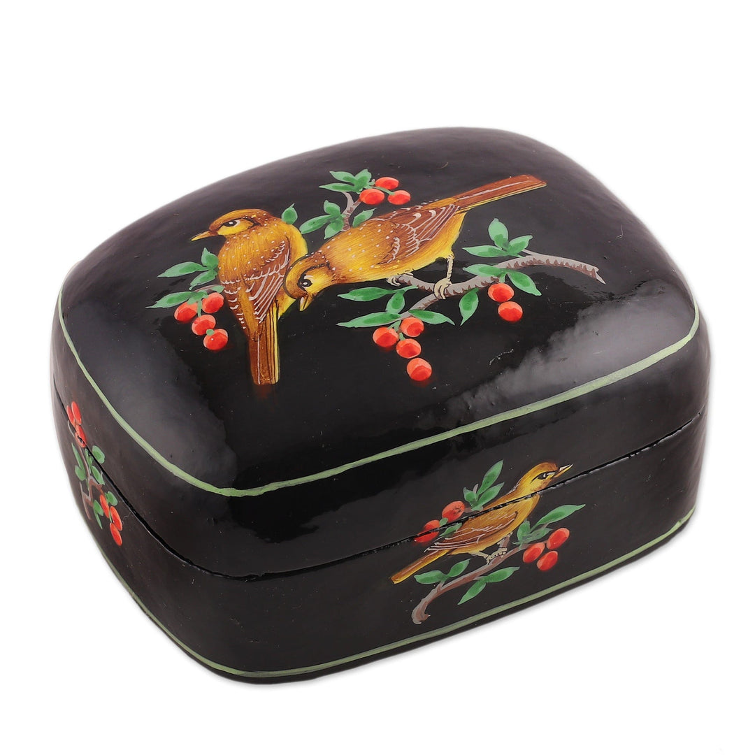 Bird-Themed Hand-Painted Black Papier Mache Decorative Box - Our Night