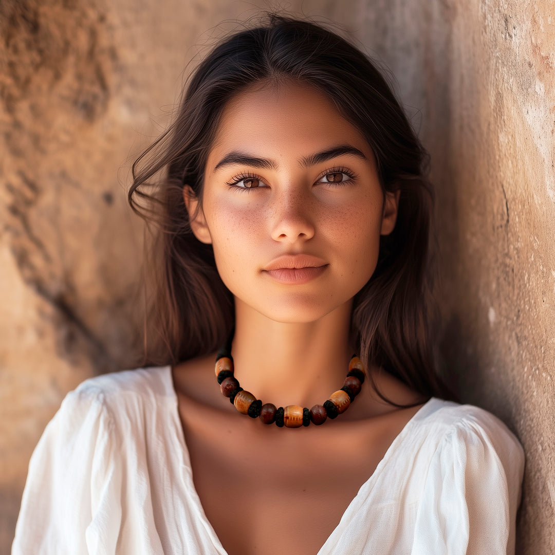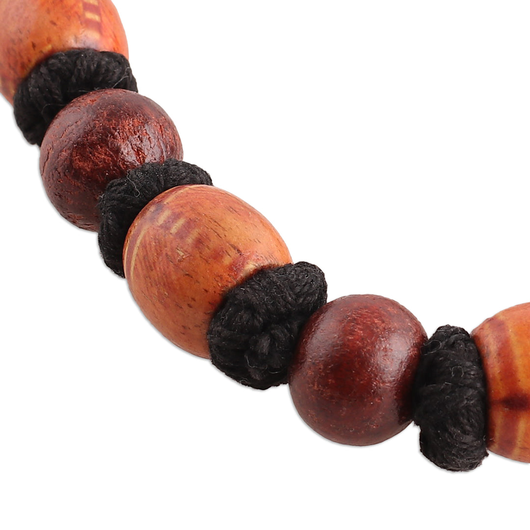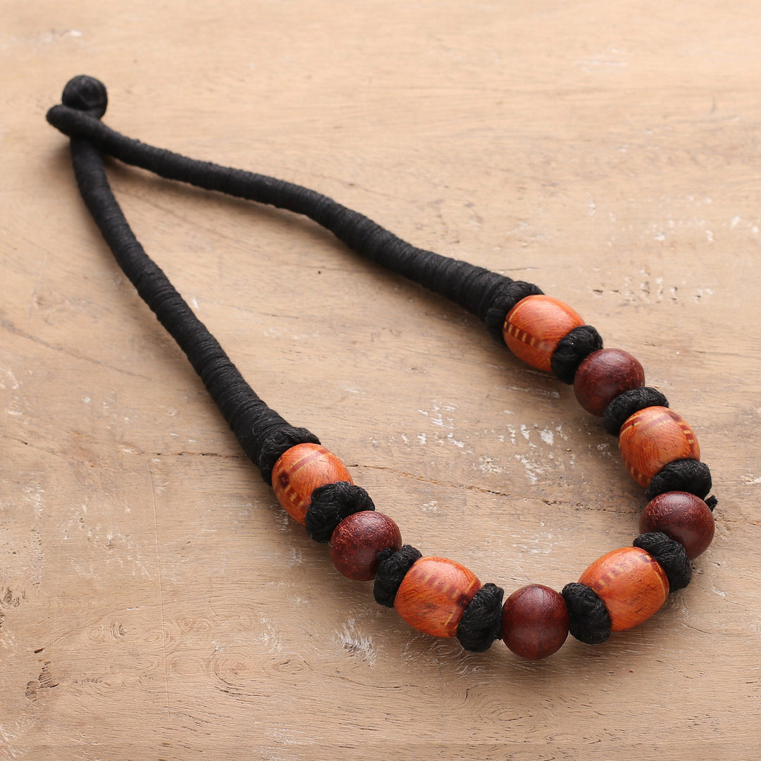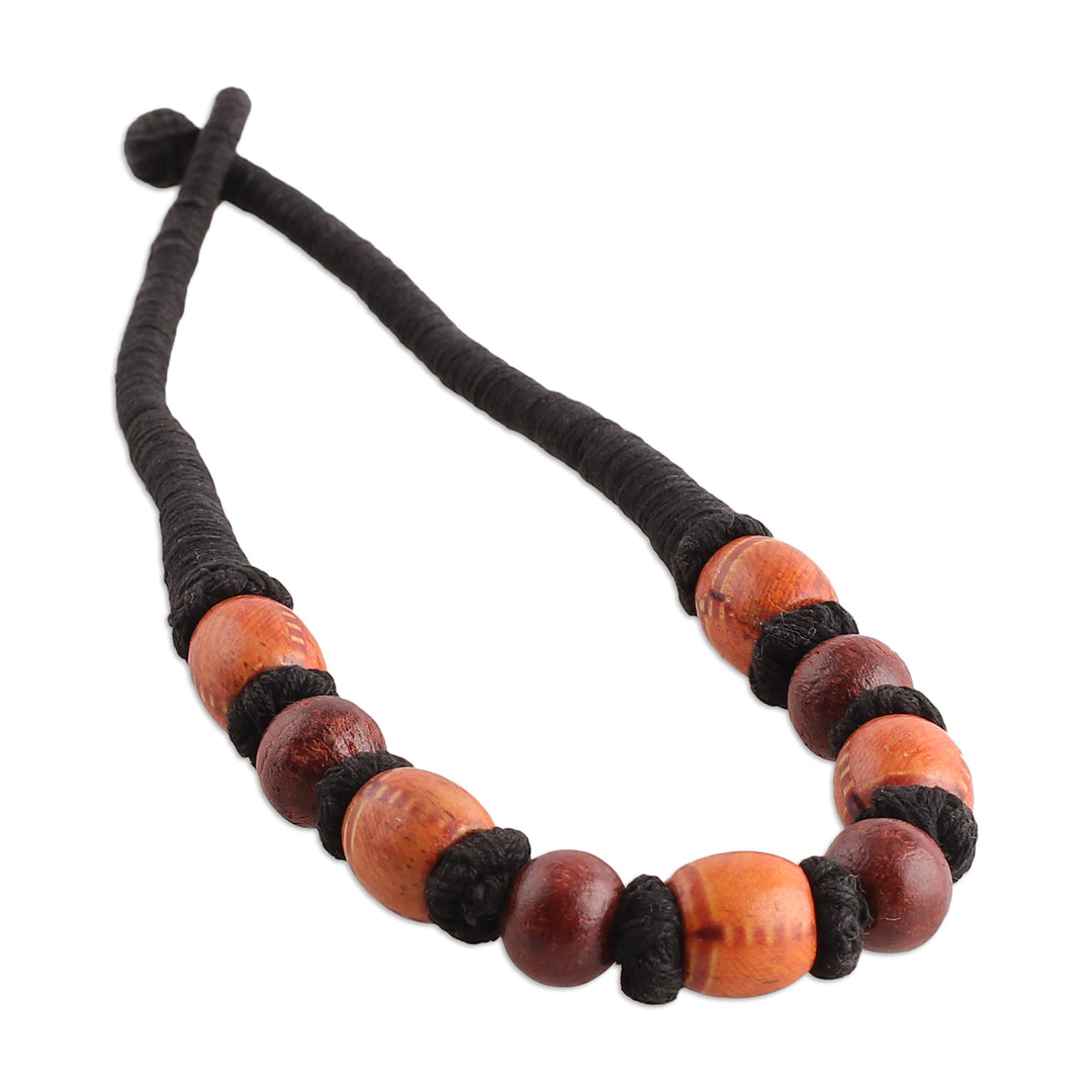 Bohemian Brown Haldu Wood Beaded Necklace with Cotton Cord - Tribal Unity