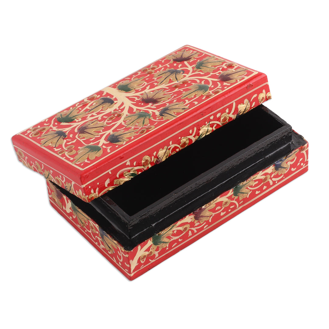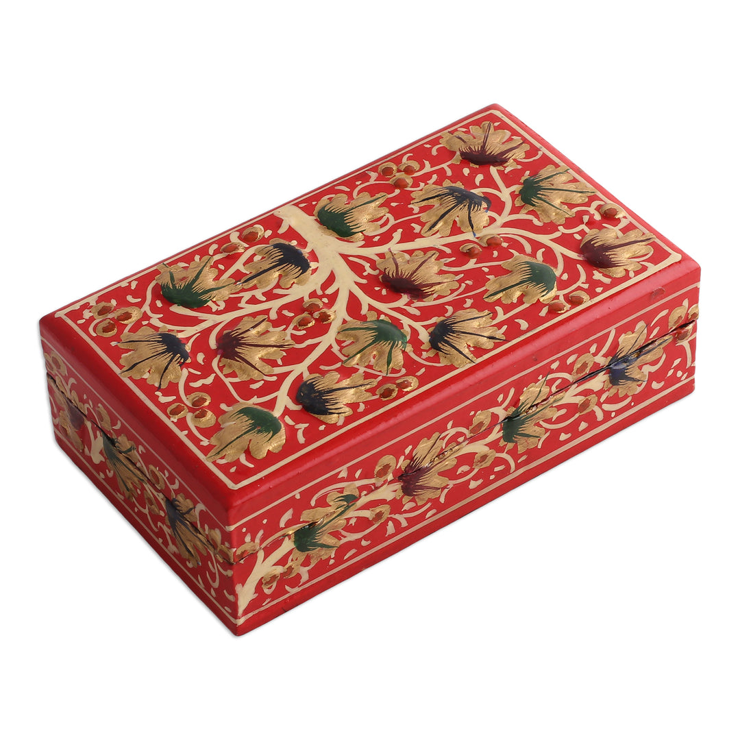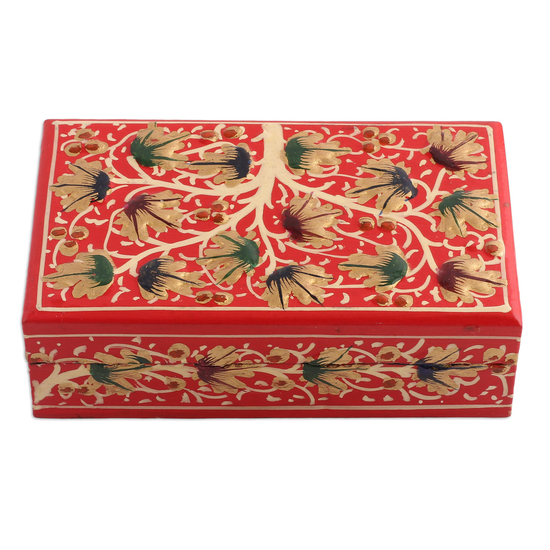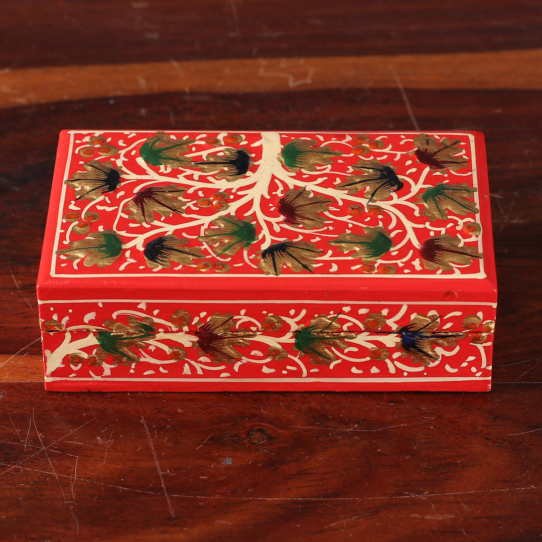 Tree-Themed Red and Golden Papier Mache Decorative Box - Red Nature