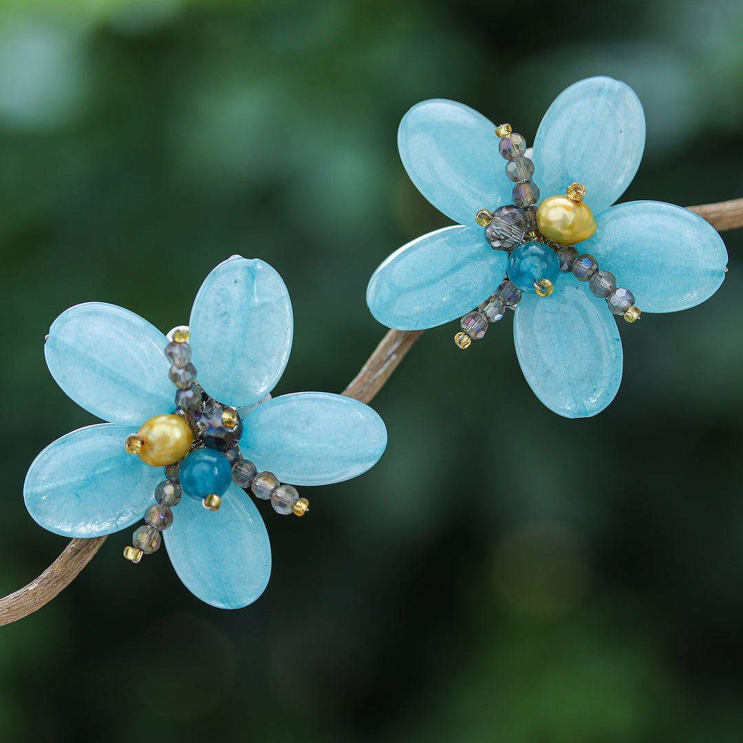 Floral Quartz and Cultured Pearl Clip-On Earrings in Blue - Ice Spring