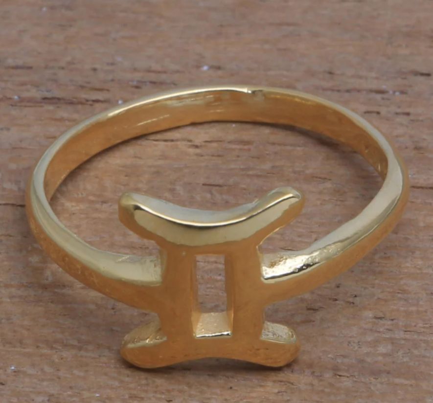18k Gold Plated Sterling Silver Gemini Band Ring - Golden Gemini