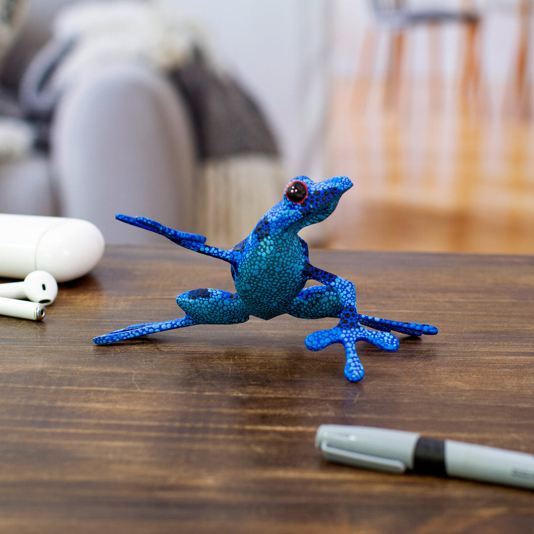 Artisan Crafted Blue Wood Frog Figurine Sculpture - Blue Dancing Frog