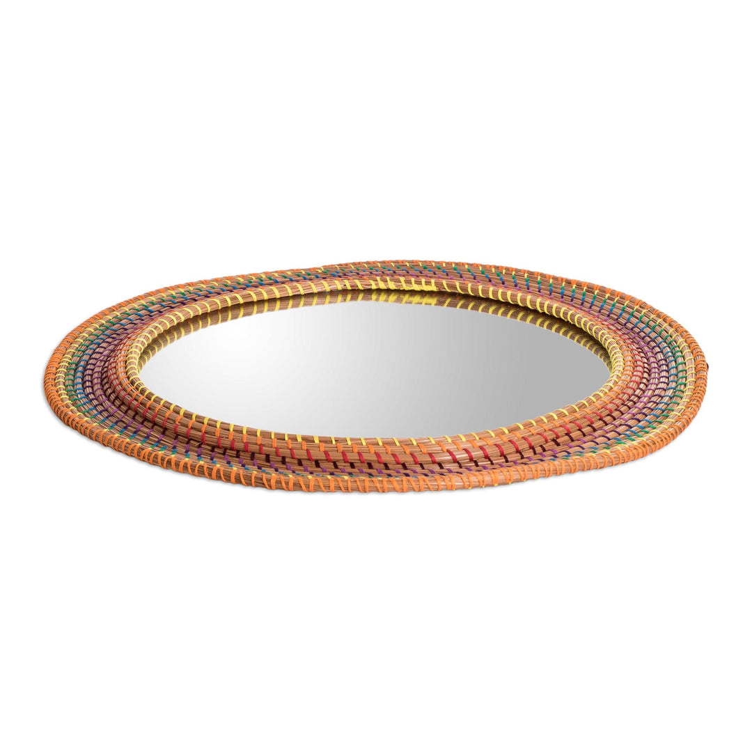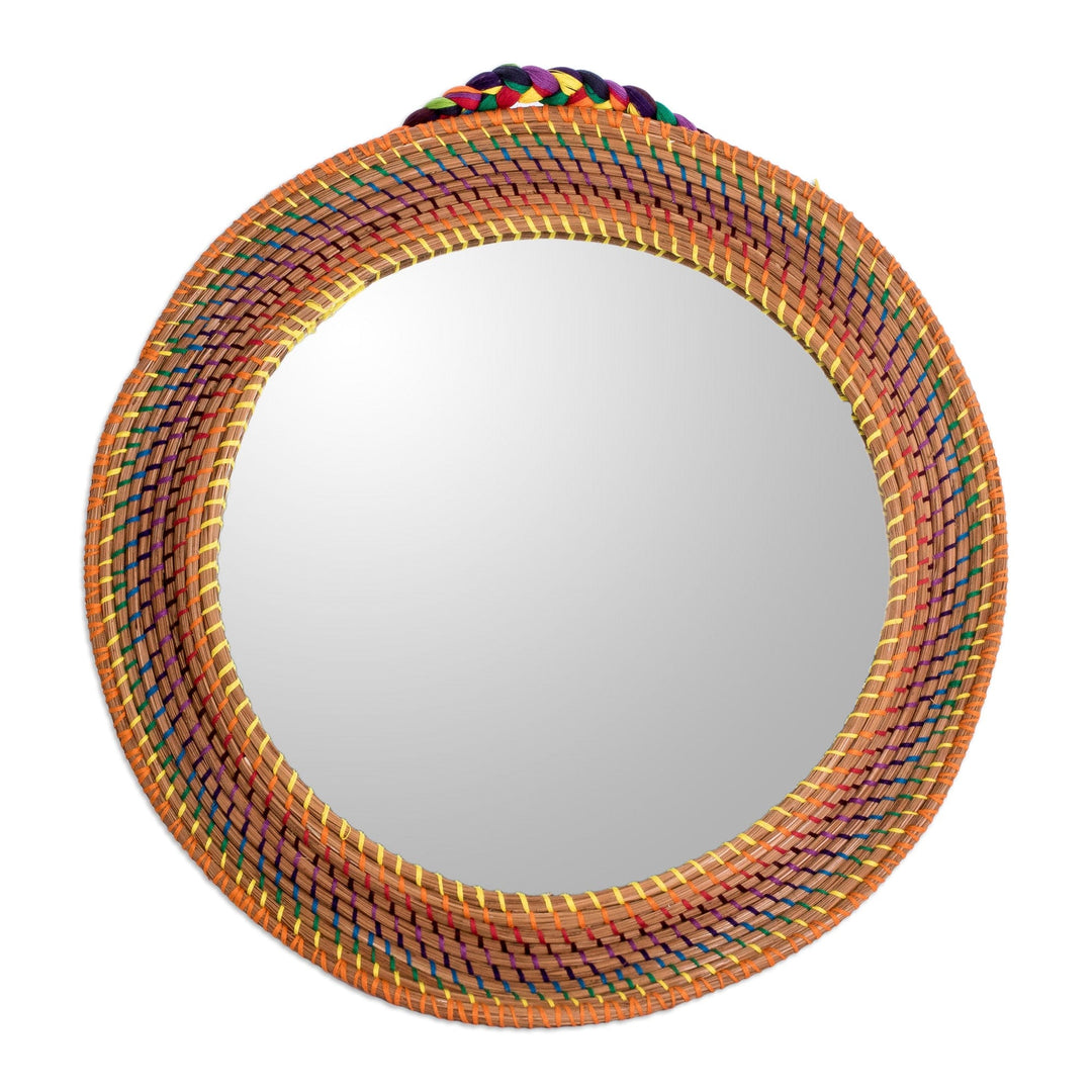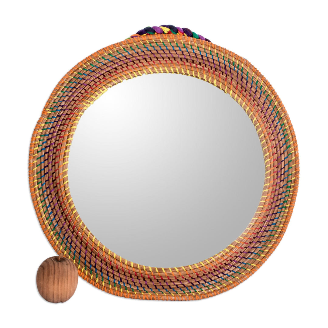 Braided Round Colorful Pine Needle and Cotton Wall Mirror - Joyous Reflections