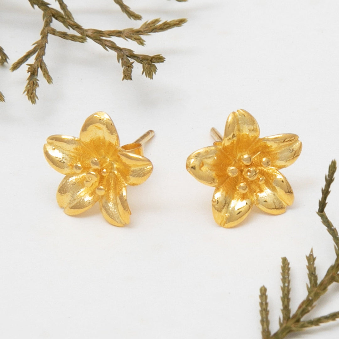 18k Gold-Plated Floral Sterling Silver Button Earrings - Summery Frangipani