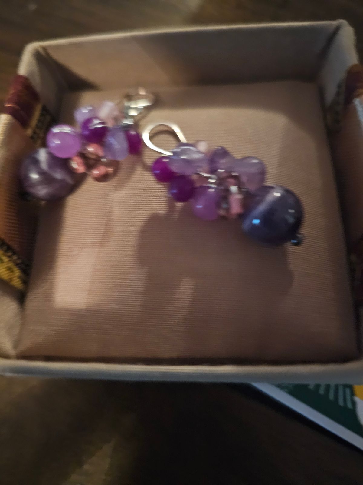 - Dyed quartz, amethyst, glass beads, 925 sterling silver hooks