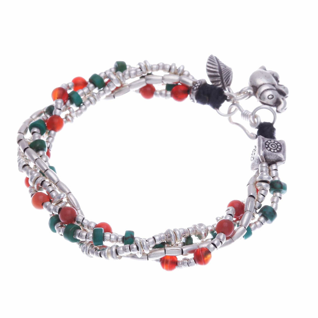 Hill Tribe-Themed Carnelian and Silver Beaded Charm Bracelet - Call for Courage