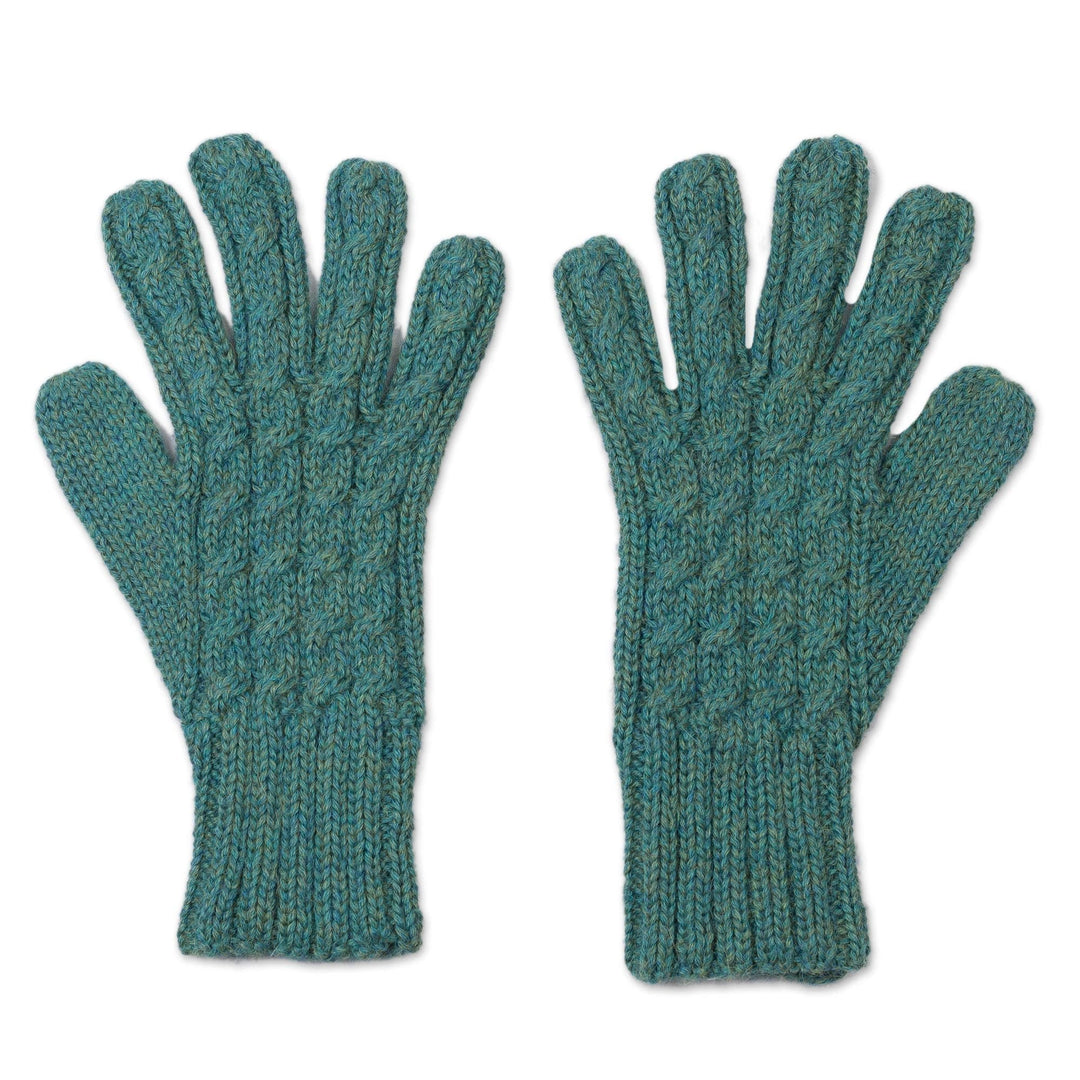 100% Alpaca Gloves in Jade from Peru - Winter Delight in Jade