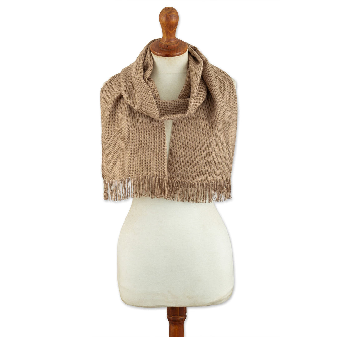 Peruvian artisans masterfully weave this fringed scarf on pedal looms with soft baby alpaca yarns in exquisite hues of brown. The textured fashion accessory designed by Maritza Pacori goes with everything thanks to its classic style and neutral colors.