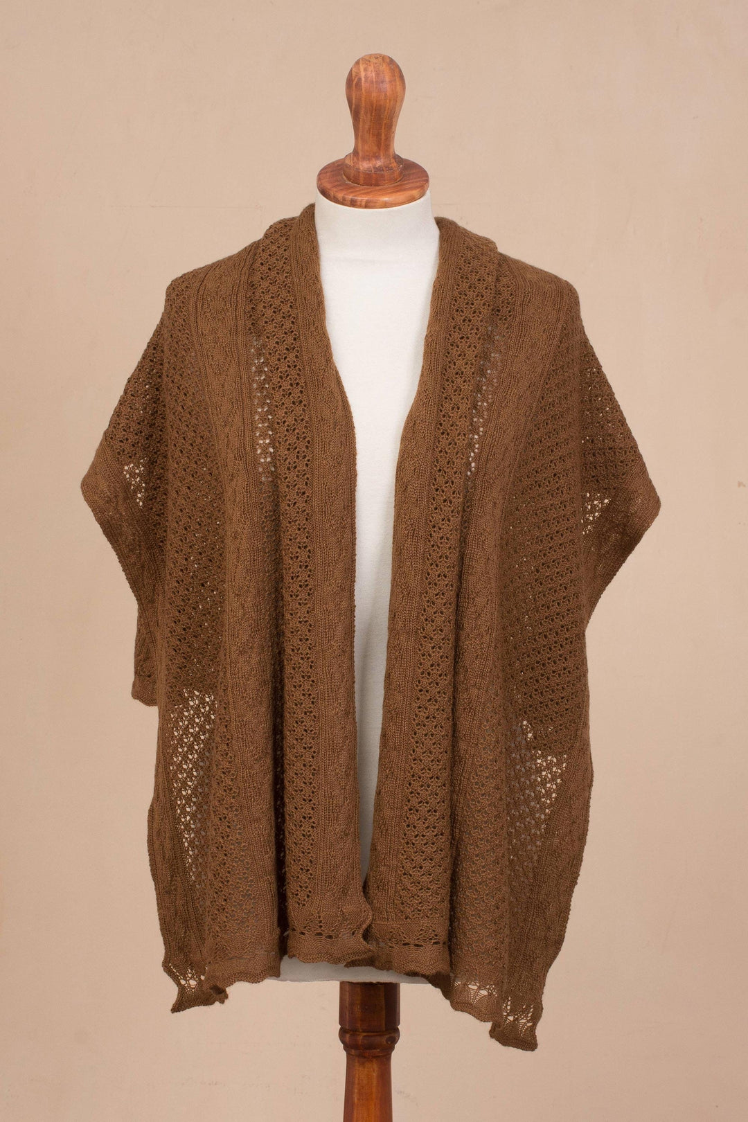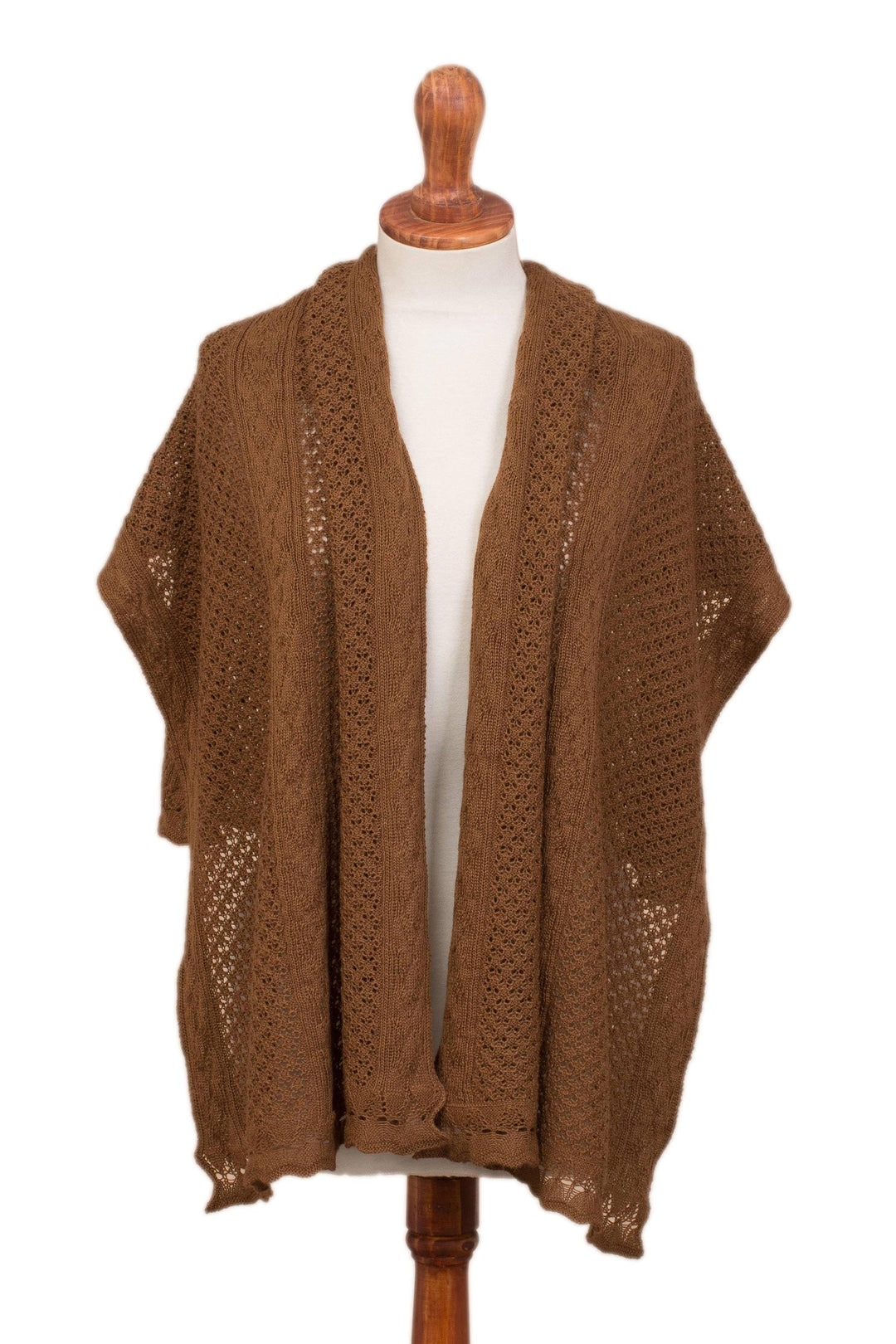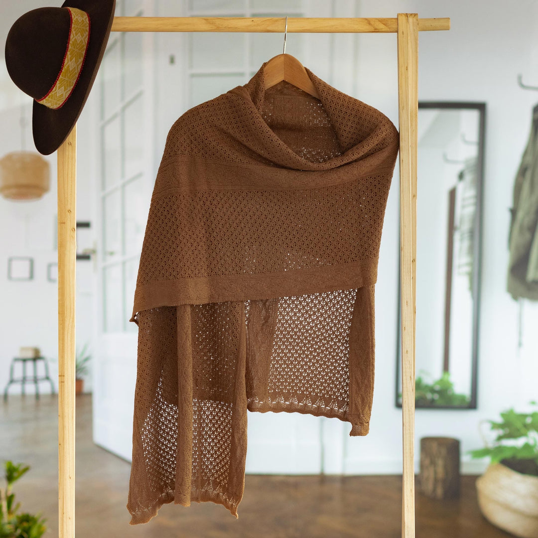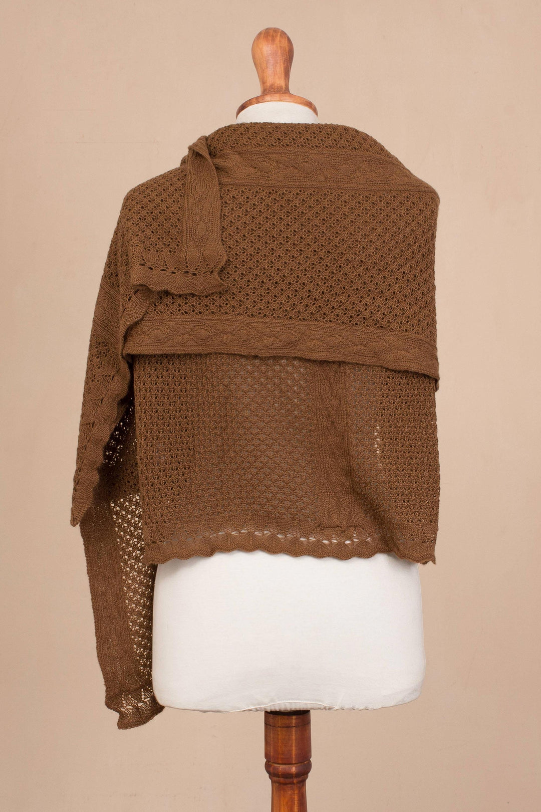 Knit Alpaca Blend Shawl in Sepia from Peru - Andean Delight in Sepia