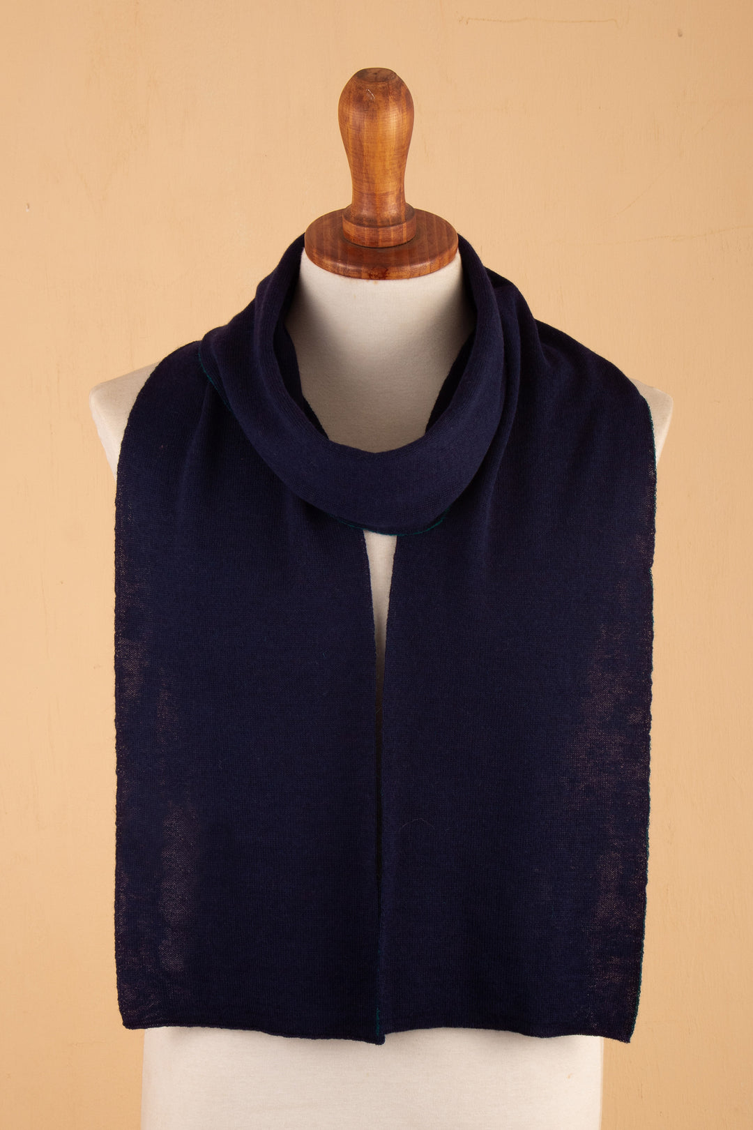 Knit Reversible Baby Alpaca Scarf in Indigo and Peacock - Peacock Trends