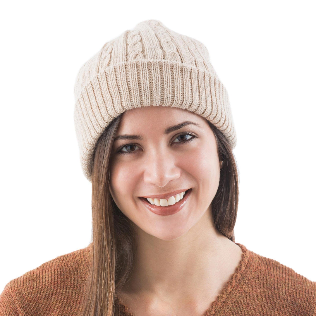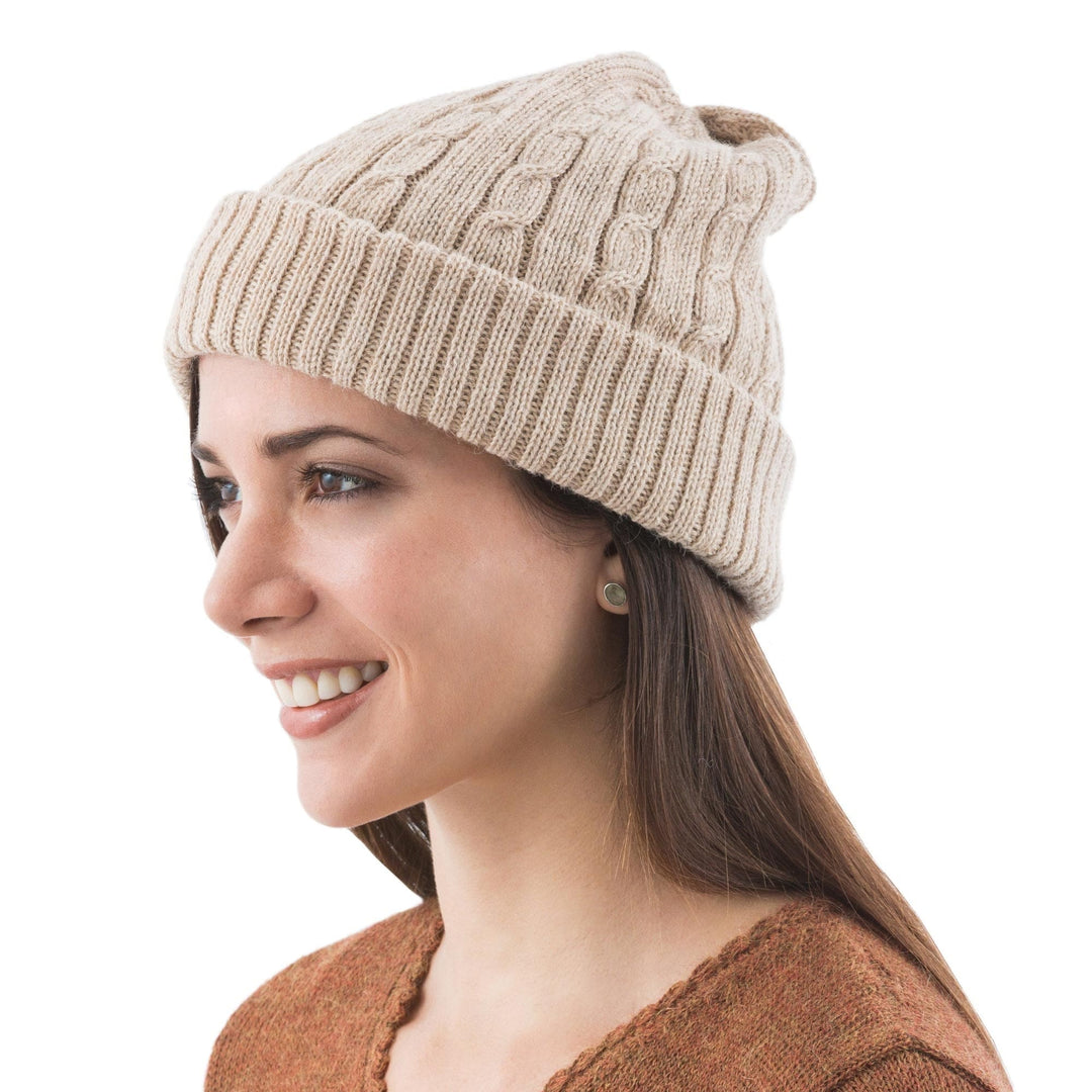 Unique Womens Alpaca Wool Solid Knit Hat - Tan Mountain Roads