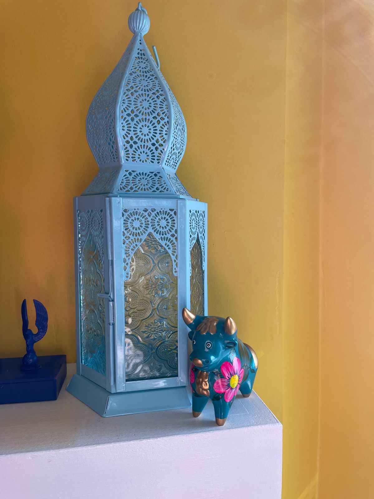 With this fabulous ceramic figurine, artisan Juan Soto honors the traditional Pucara bulls that in many regions of his native Peru are placed on top of houses for protection. Each bull has a distinctive color and purpose, and the green or teal one is a symbol of fertility, prosperity and good health. The figurine is crafted and painted by hand with gorgeous leaf and floral motifs.
