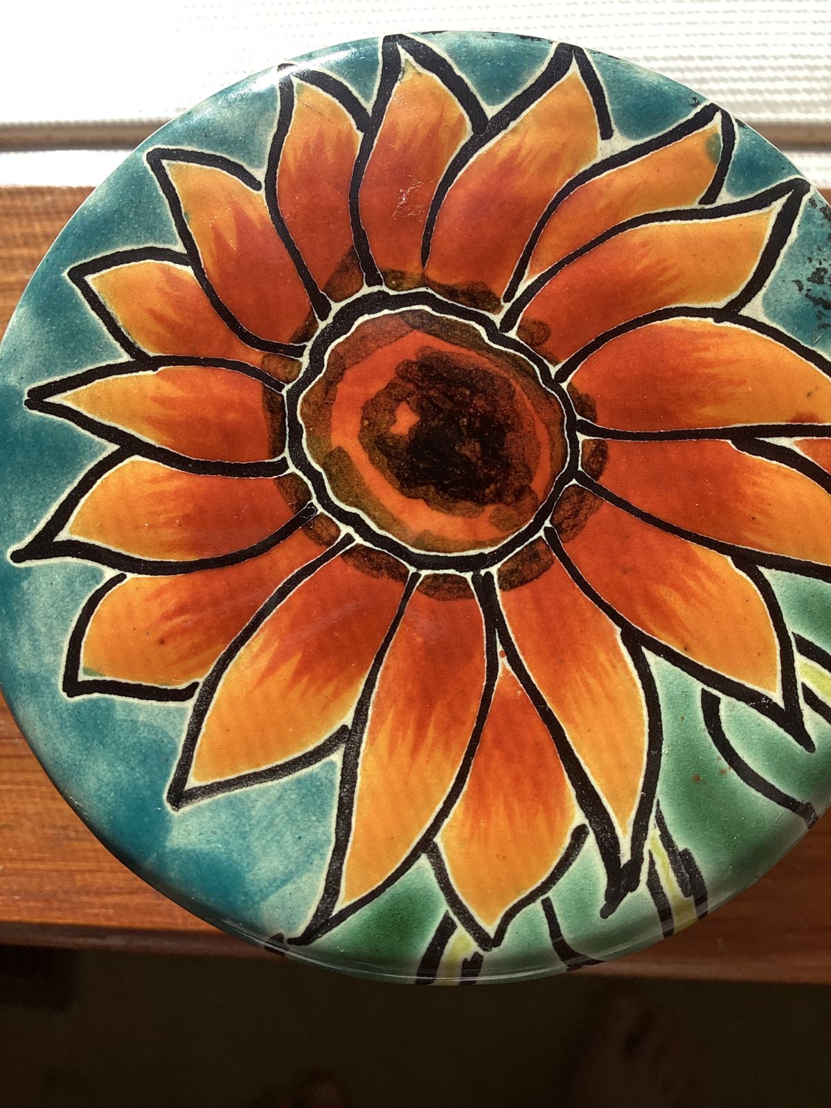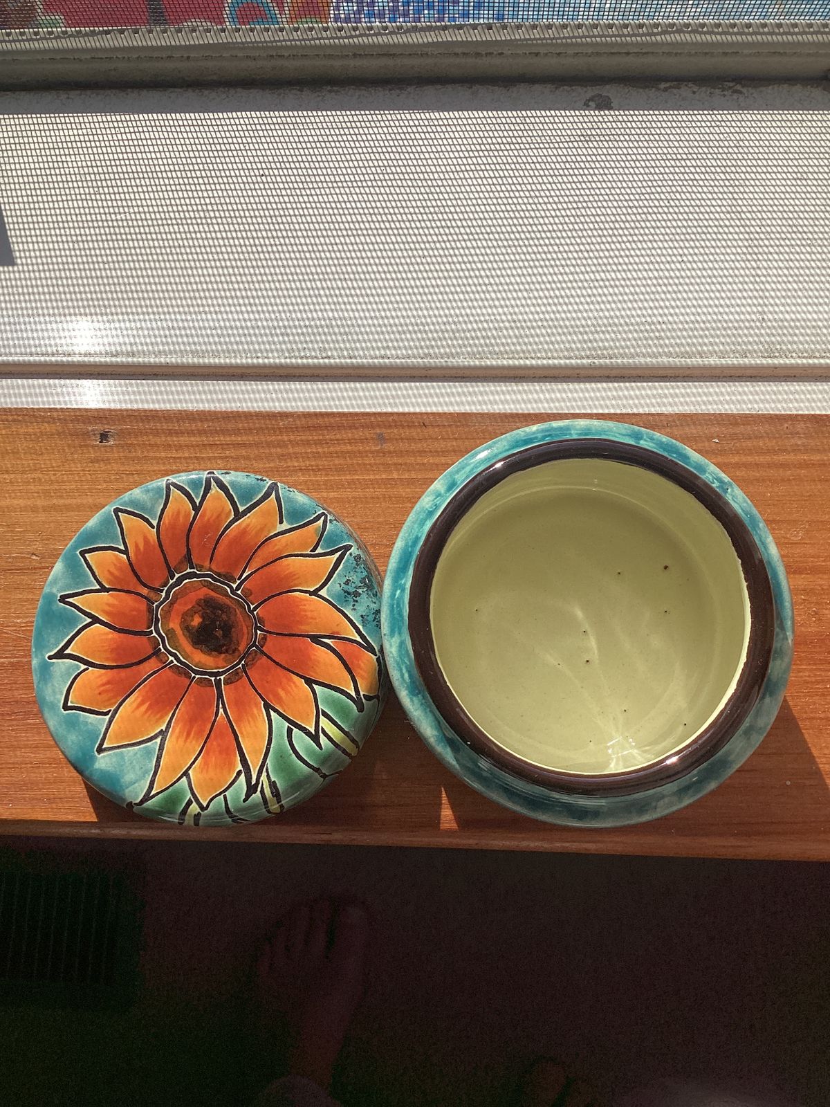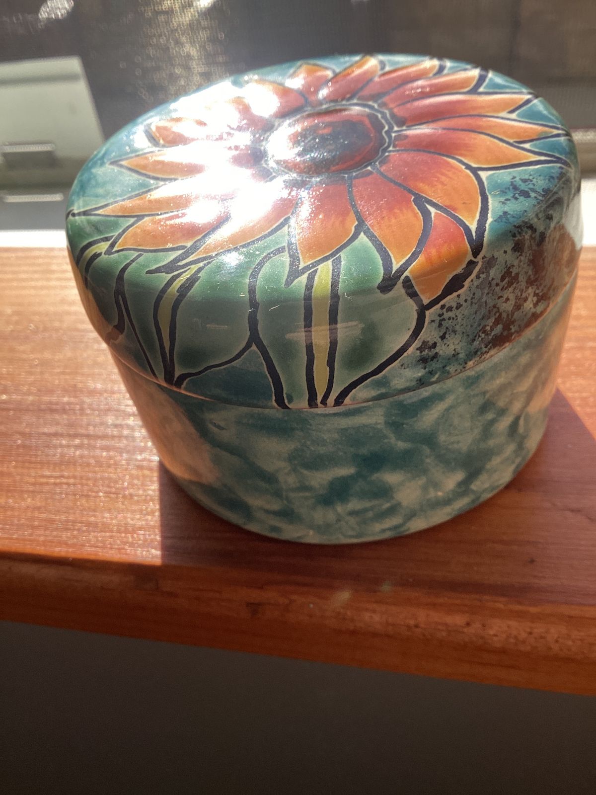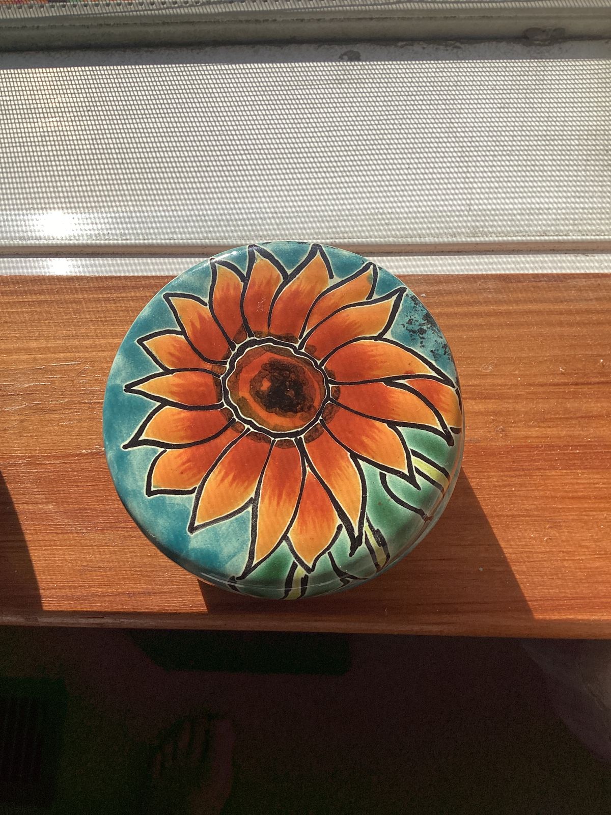 Handcrafted in the time-honored majolica style, this petite jewelry box is just right for holding tiny treasures. The Contreras Family makes the box, hand-painting the lid with a brilliant sunflower.
