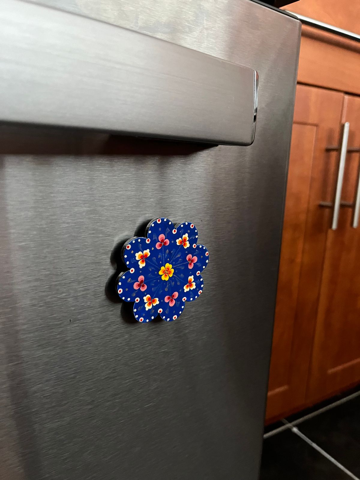 Lacquered Hand-Painted Papier Mache Blue Flower Magnet - Blue Flower